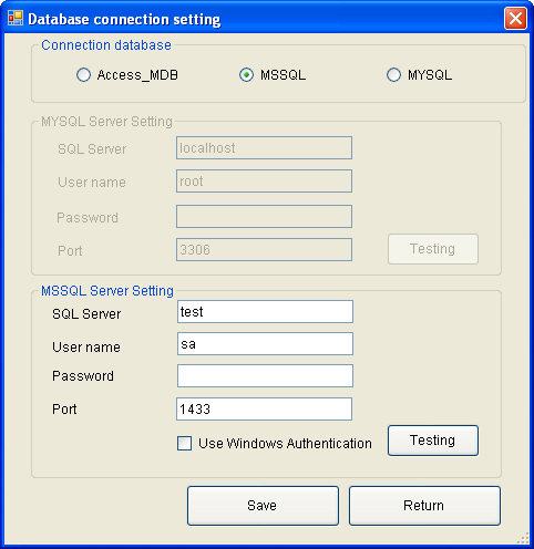 Supports Access,MYSQL,MSSQL three kinds database,it can slove the big recording data problem.