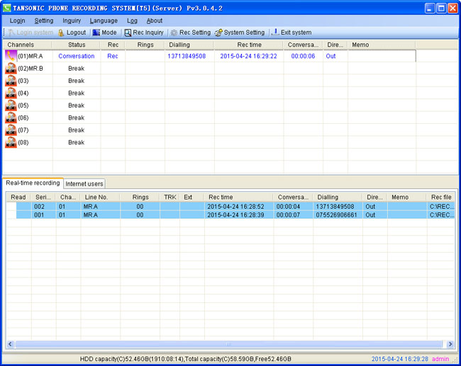 2.Monitoring enterprise operation and checking utilization rate of call and human resource for high rank people.Can also find action of benefit damage quickly and do some relevant measure to prevent that.Futhermore,phone recording system can make people devote themselves to work and improve working efficiency.Therefore can search new sales potential and orientation,also can provide with unexpected law proof for high rank people.