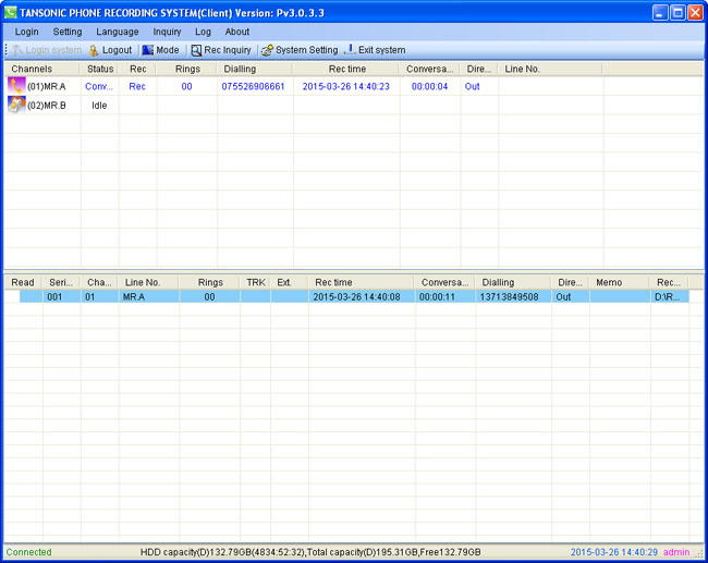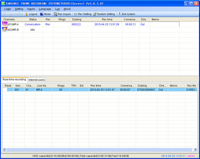 8 Inquiry Interface.The user can do some inquiry ,playback and remark the recording file and other features here.