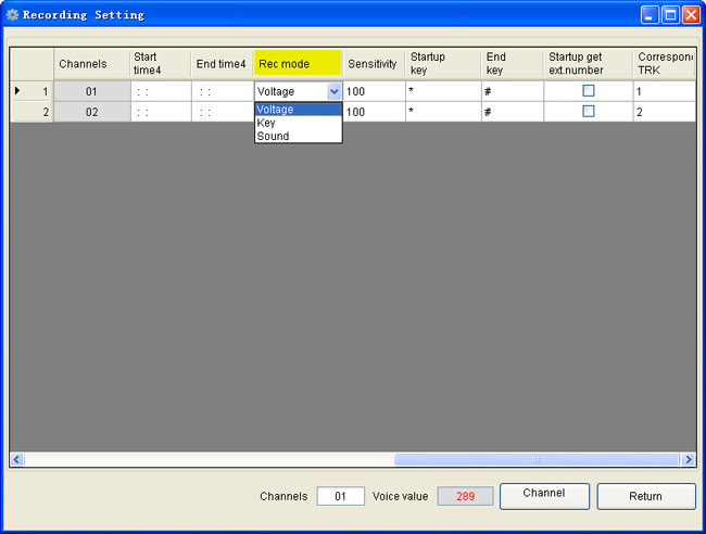 The system with Voltage Control,Key Control,Sound Control and so on..Start time of recording can be set freely –can record some duration ,or record whole a day.