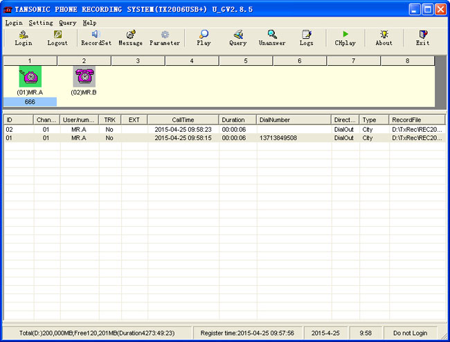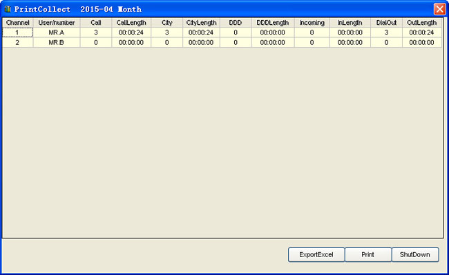 10 Print and collect table interface. Can do some statistics about dial in / out times and conversation duration by month or day.It also can export the results to Excel.