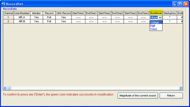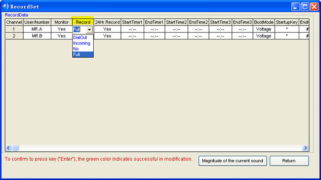 3. The setting interface of starting record mode . For example the “Key” mode,when an important call ,click "*" key to record,or it will no record.