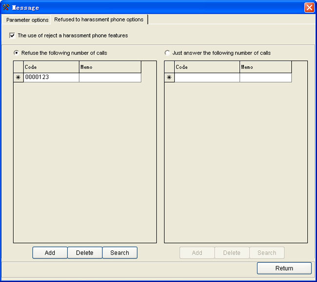 13 Settings of blacklist refuse interface.It can refuse the number directly.
