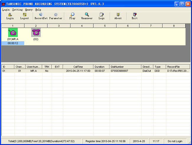 10 Print and collect table interface. Can do some statistics about dial in / out times and conversation duration by month or day.It also can export the results to Excel.
