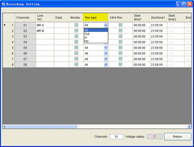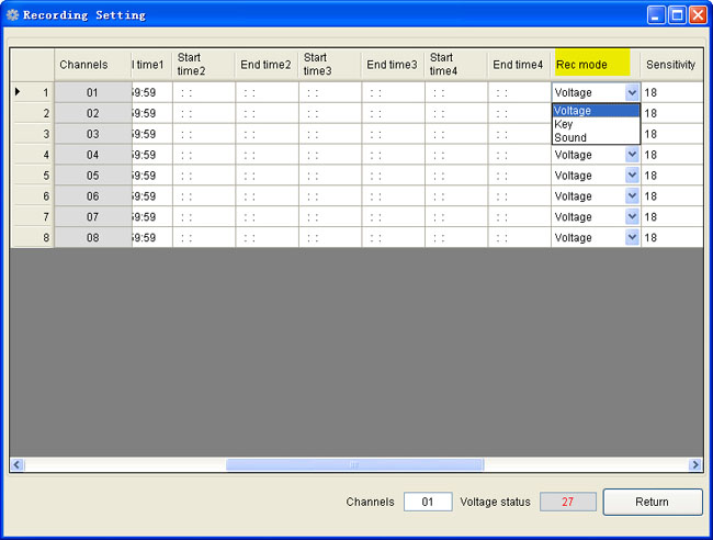 The system with Voltage Control,Key Control,Sound Control and so on..Start time of recording can be set freely –can record some duration ,or record whole a day.